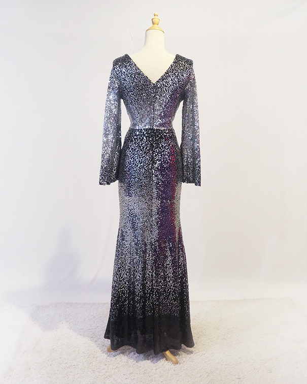 Gradient Light 'Steel Blue' Sequined Mild Mermaid DressSize: L(one time alteration included)Back: invisible middle zipper Long Flare Sleeves