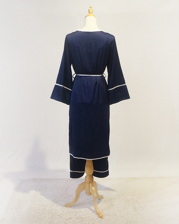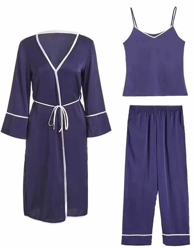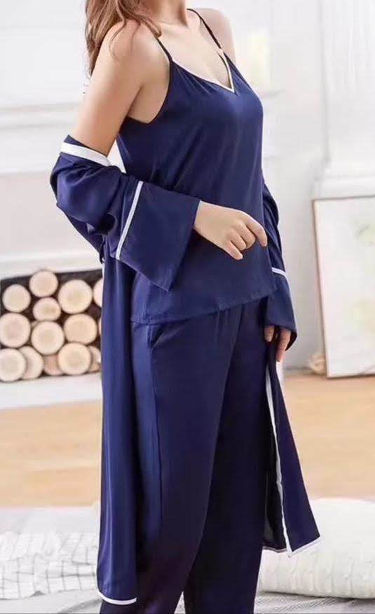 [Premium] 3 pieces set Navy Blue Night Robe Sleepwear Chiffon Satin Bath Robe