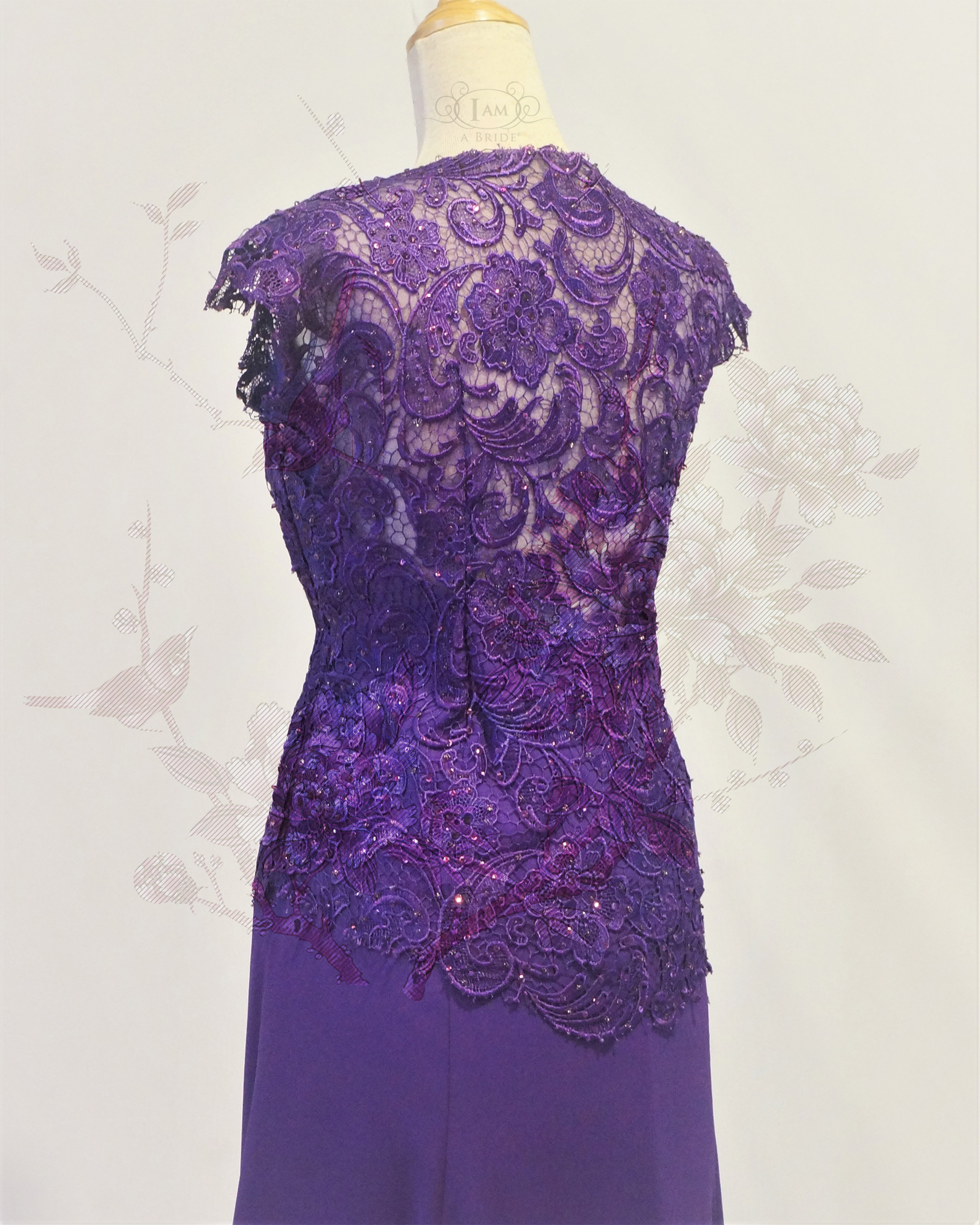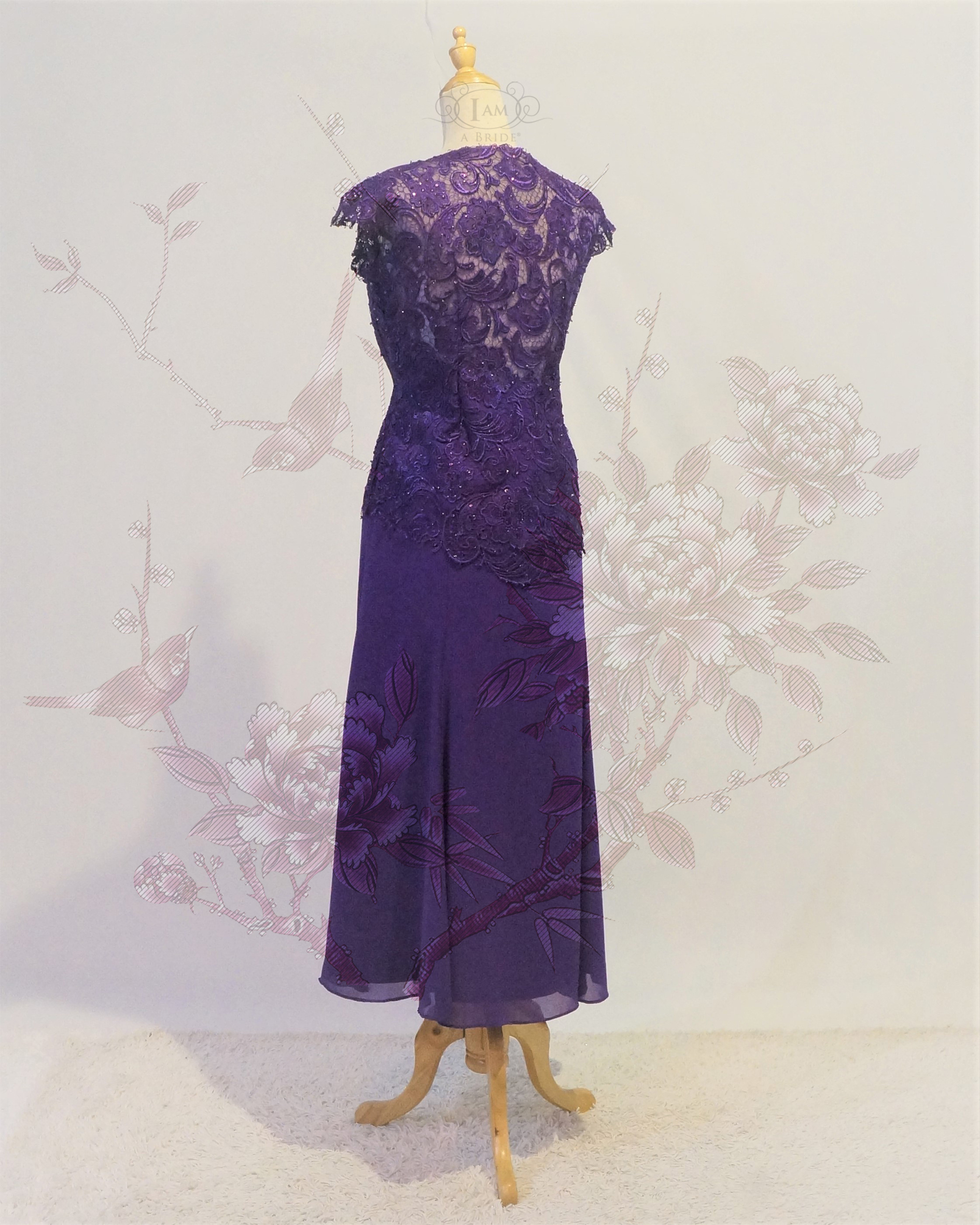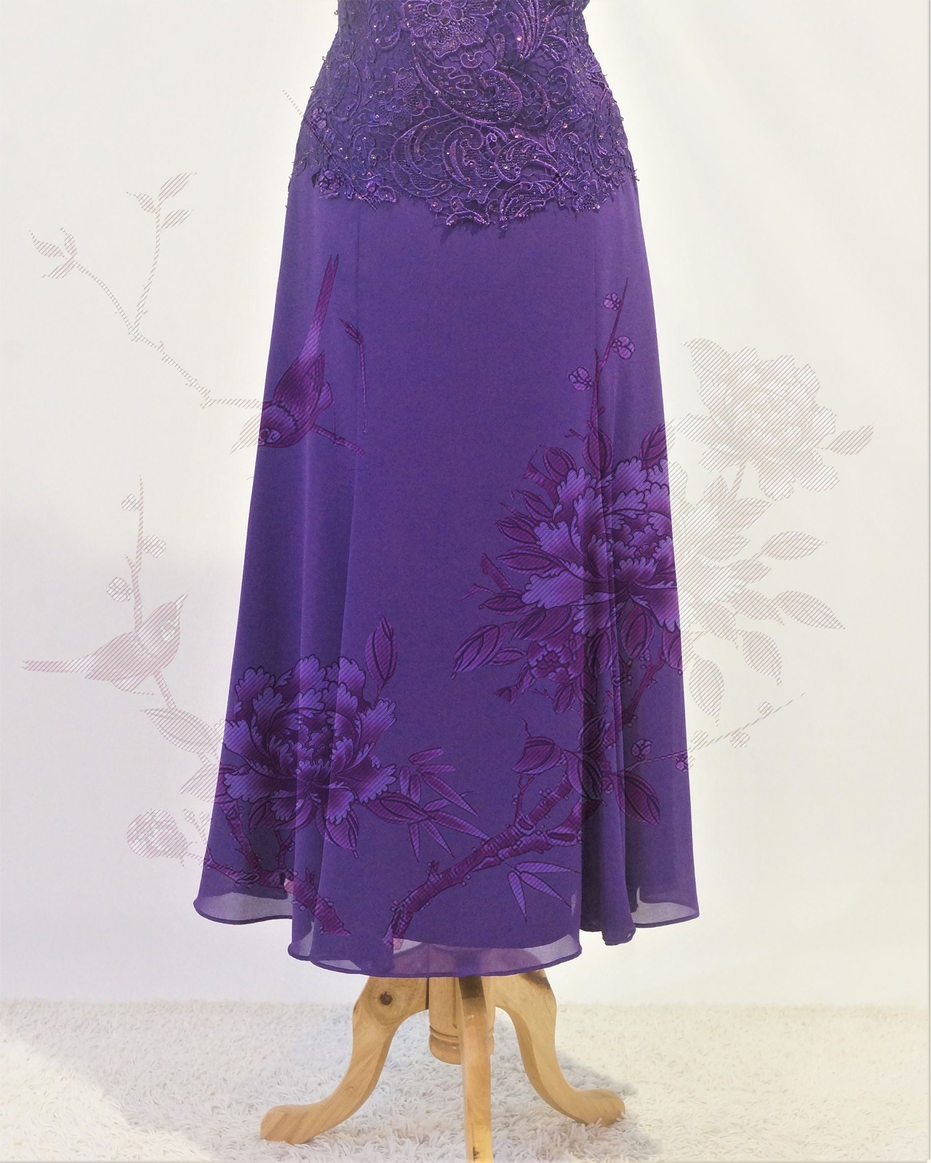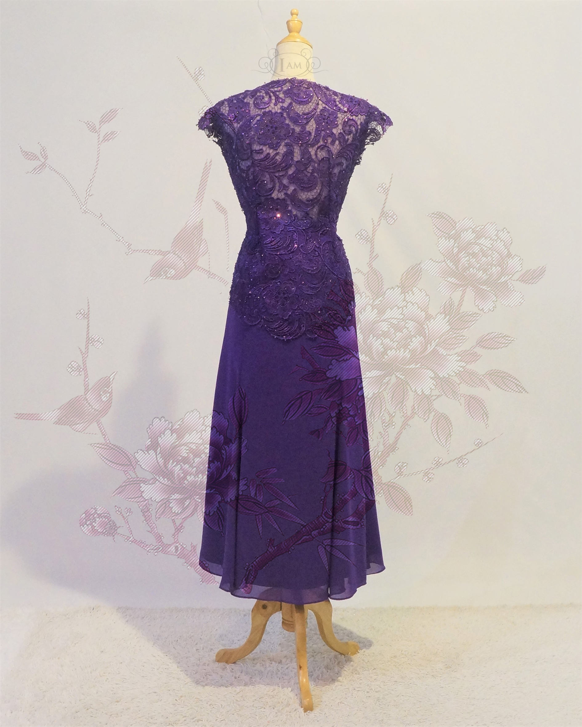 [Tailor Made] Purple Venetian Lace Chiffon Skirt Mid Length Dinner Dress Evening Wear.